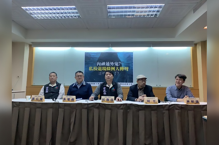 全教總副秘書長張旭政表示,十年內可預見上百所私立高中職及大專院校退場,總校產超過千億元,學校被列為專案輔導,教育部版本原規定財產要強制信託,讓董事會無權上下其手,政院版竟刪除該條款。